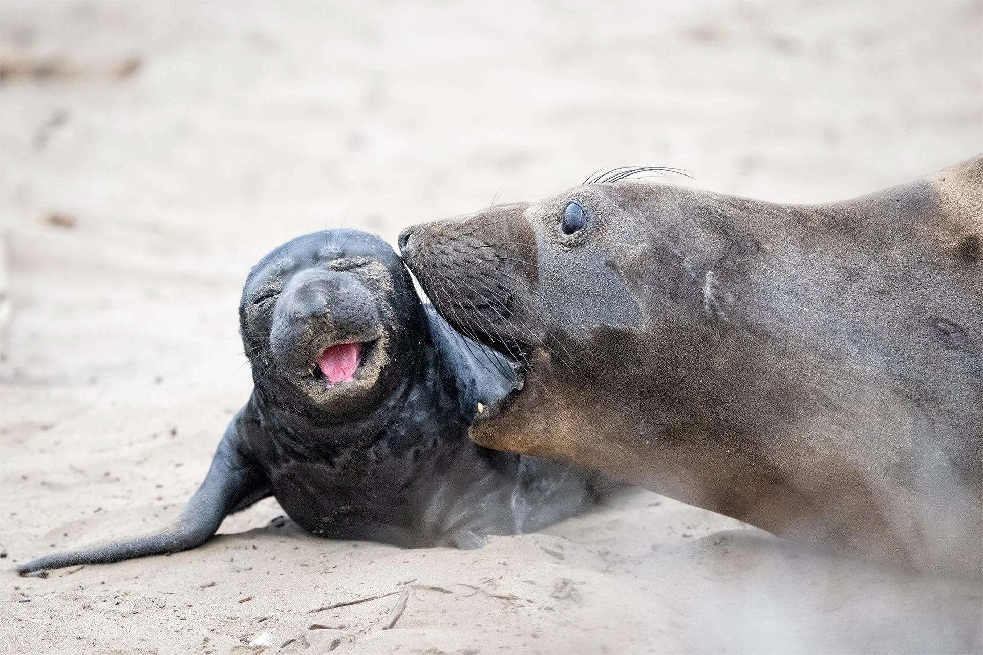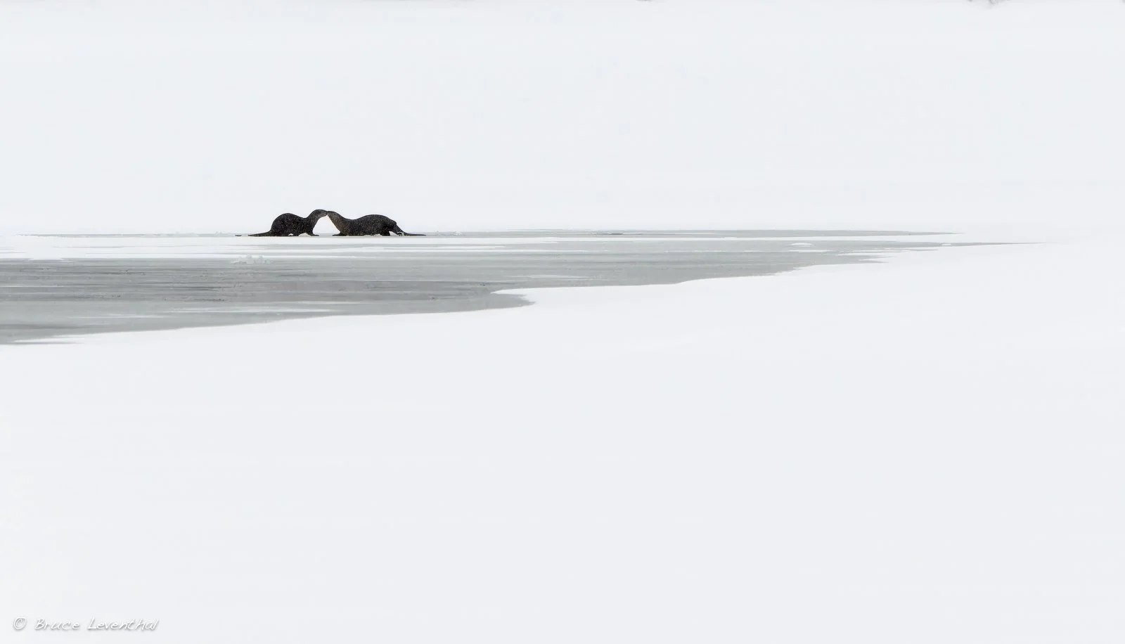 Otter Kiss : In the beginning of December I visited Grand Teton National Park. While I’ve been to this location many times in the past, I’ve never experienced a winter in the Tetons. My target species for the trip were moose, but I’m an opportunist and will photograph anything that catches my eye. This photo is of a pair of otters that were diving into and out of a frozen river. At one point one otter ran towards the other and they appeared to kiss. It is a simple image with very few elements… just the way I like it!